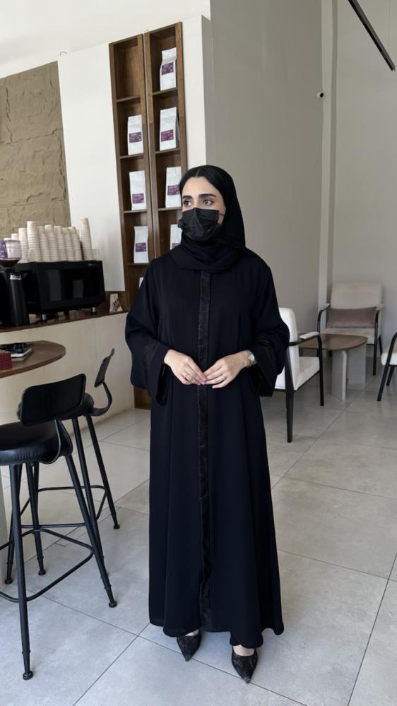 - طول العباية يؤخذ من الكتف الى أسفل الكعبين (من الأمام)